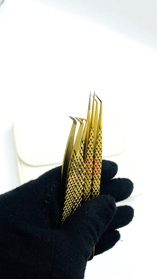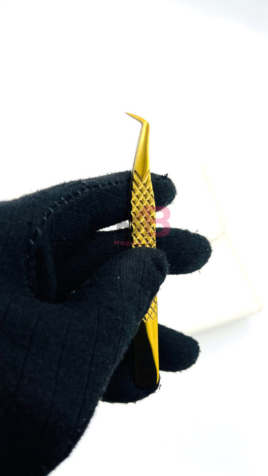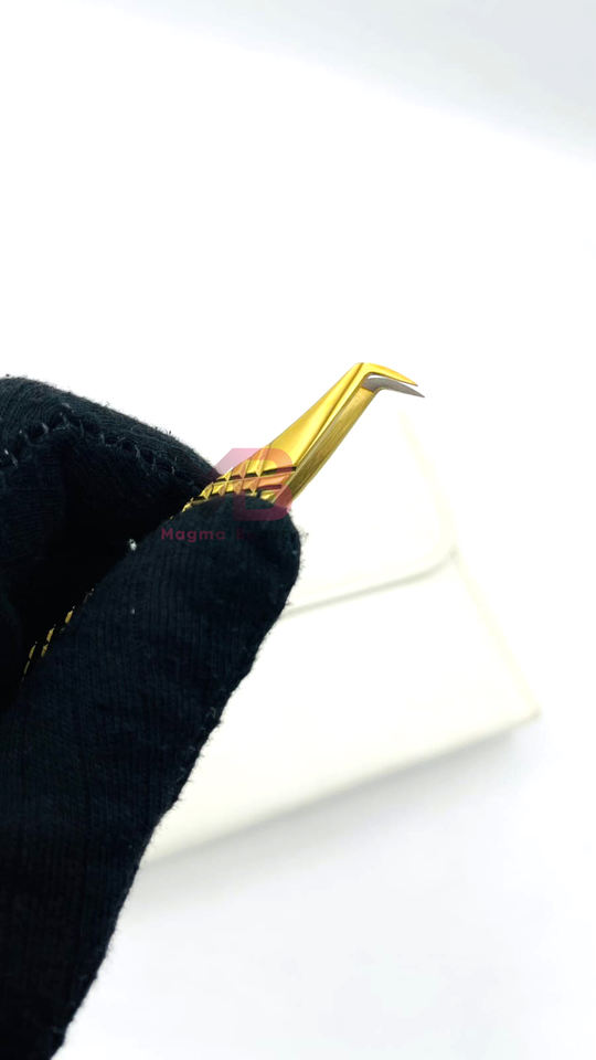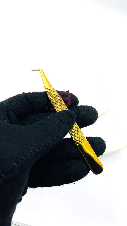 แหนบปลายต่อขนตาแบบมีด้ามจับปลายเพชรพลาสม่าสีทองติดฉลากส่วนตัวจากญี่ปุ่น