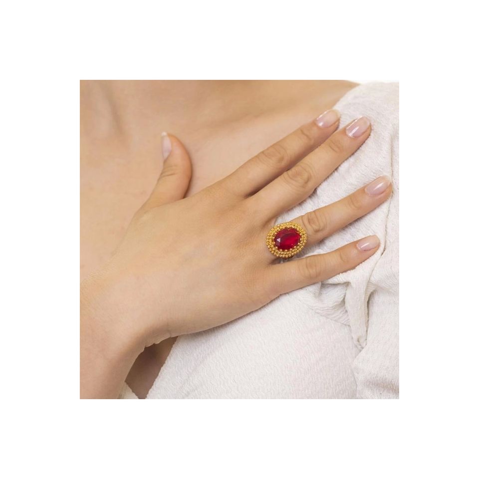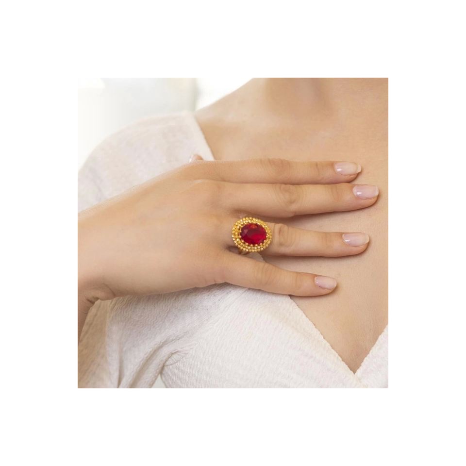 แหวนทองชุบ 22 กะรัต สไตล์อันเท็ป (3503) สำหรับเด็ก ทำจากทองเหลืองผสมทองแดงขัดเงา ประดับเพชรทรงรีแบบฝังกรงเล็บ