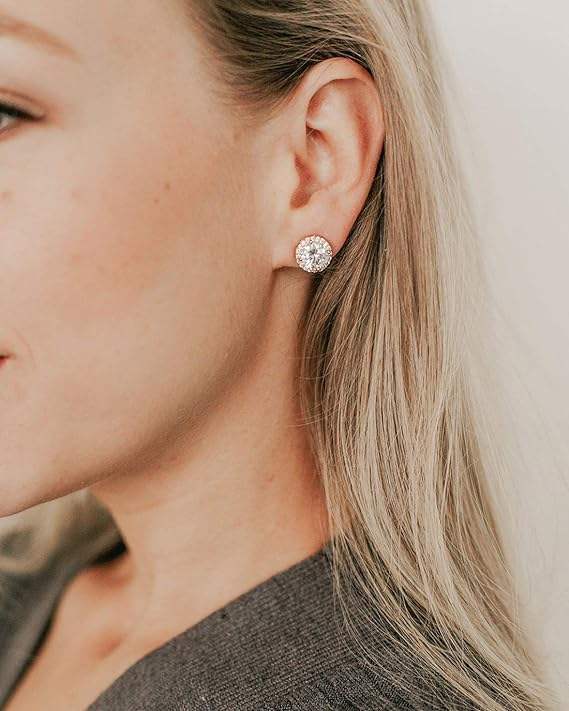 ตุ้มหูเซอร์โคเนียทรงลูกบาศก์ทรงกลมขนาดใหญ่8มม. ชุบทองอัญมณีที่สวยงามรูปทรงดอกไม้พลอยเทียมเป็นประกายดีไซน์ลายดอกไม้