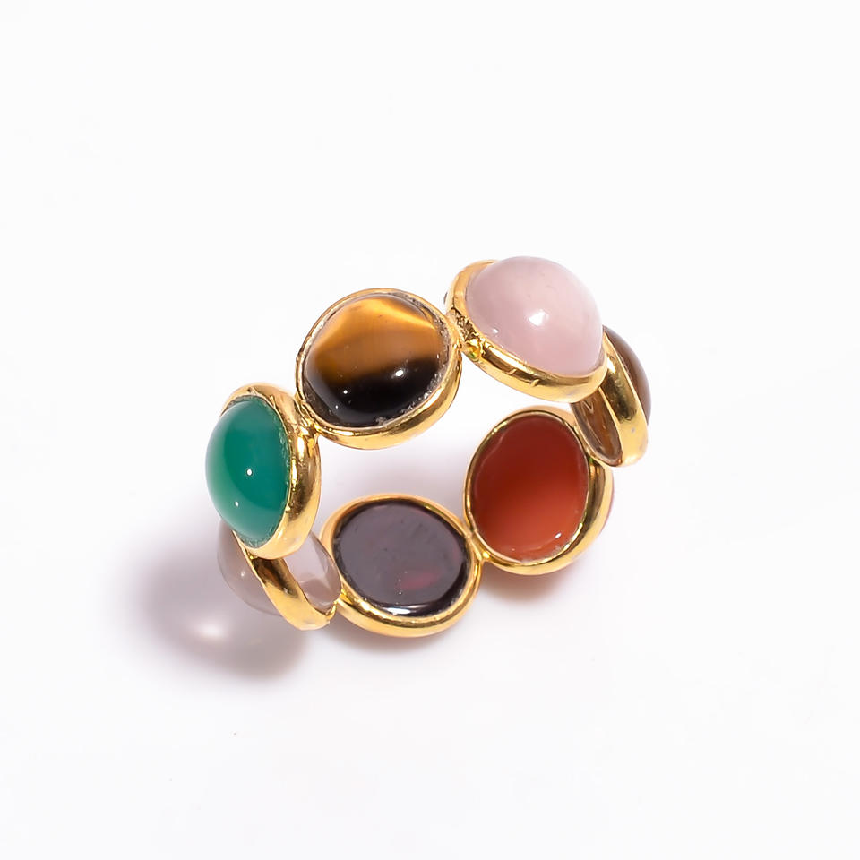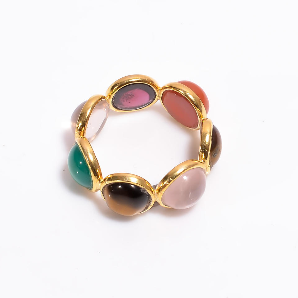 แหวนเงินสเตอร์ลิง925ชุบทองพร้อมแหวนพลอยผสมเครื่องประดับแหวนชุบทอง