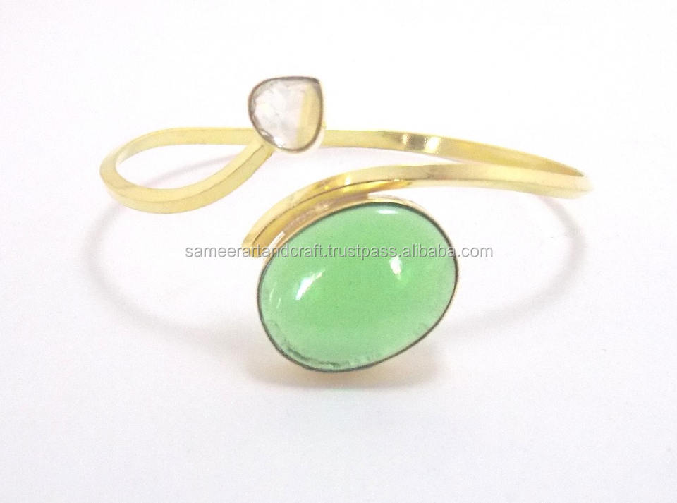 กำไลข้อมือทองชุบแบบปรับได้ ดีไซน์ทันสมัย สำหรับงานแต่งงาน สไตล์วินเทจ ประดับด้วยพลอยธรรมชาติหลากหลายชนิด ทำด้วยมือจากทองเหลืองและเพชร CZ