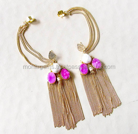 ต่างหูห้อยประดับมุกและพู่ห้อย 3 ชั้น ทำจากโลหะผสมชุบทอง พร้อมต่างหูแบบหนีบสำหรับผู้หญิง