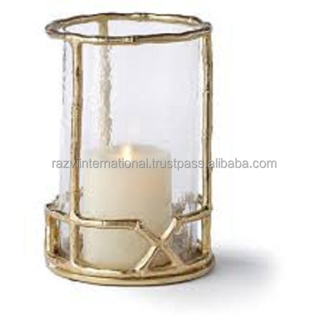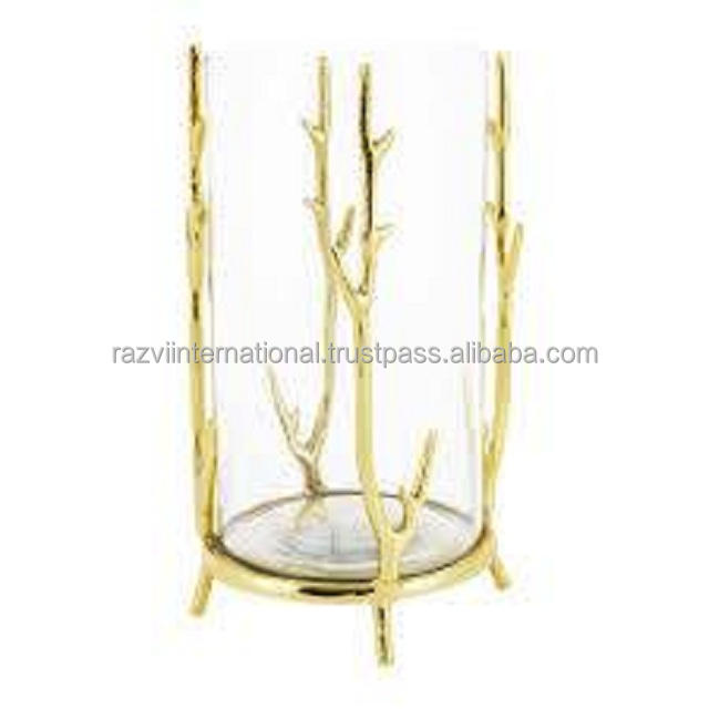 เชิงเทียนทรงแก้วทำด้วยมือกรอบดีไซน์เขากวางชุบทอง