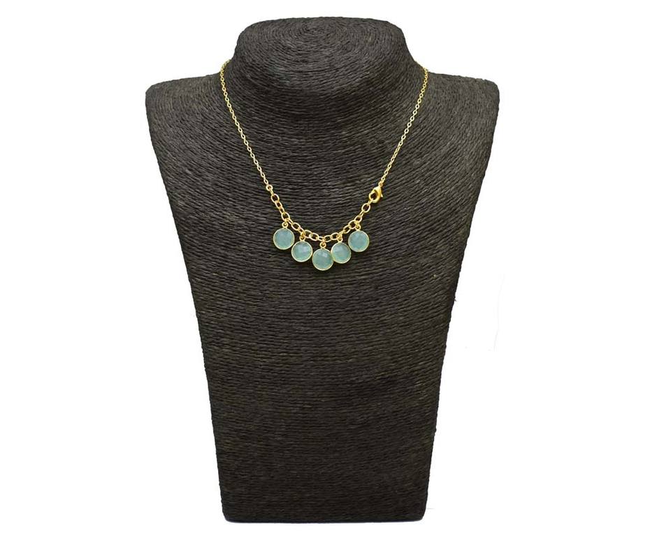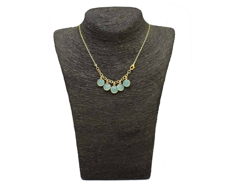 Gold plated aqua chalcedony gemstone jewelry necklace setJewelry Name