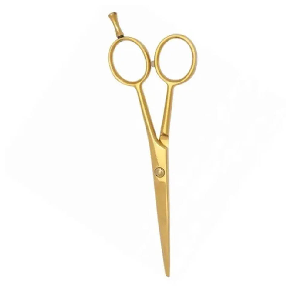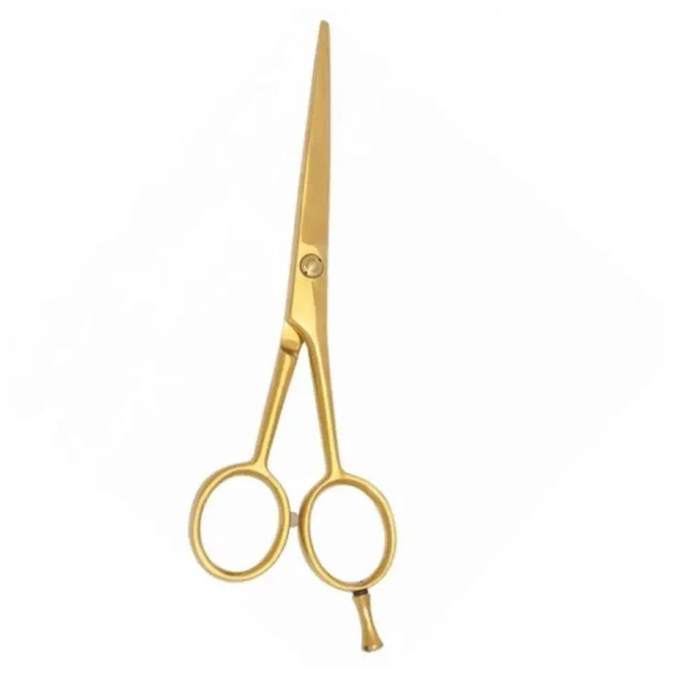 กรรไกรตัดผมชุบทองกรรไกรตัดผมสแตนเลสมืออาชีพพร้อมใบมีดตรงปลายแหลมเพื่อความแม่นยำ
