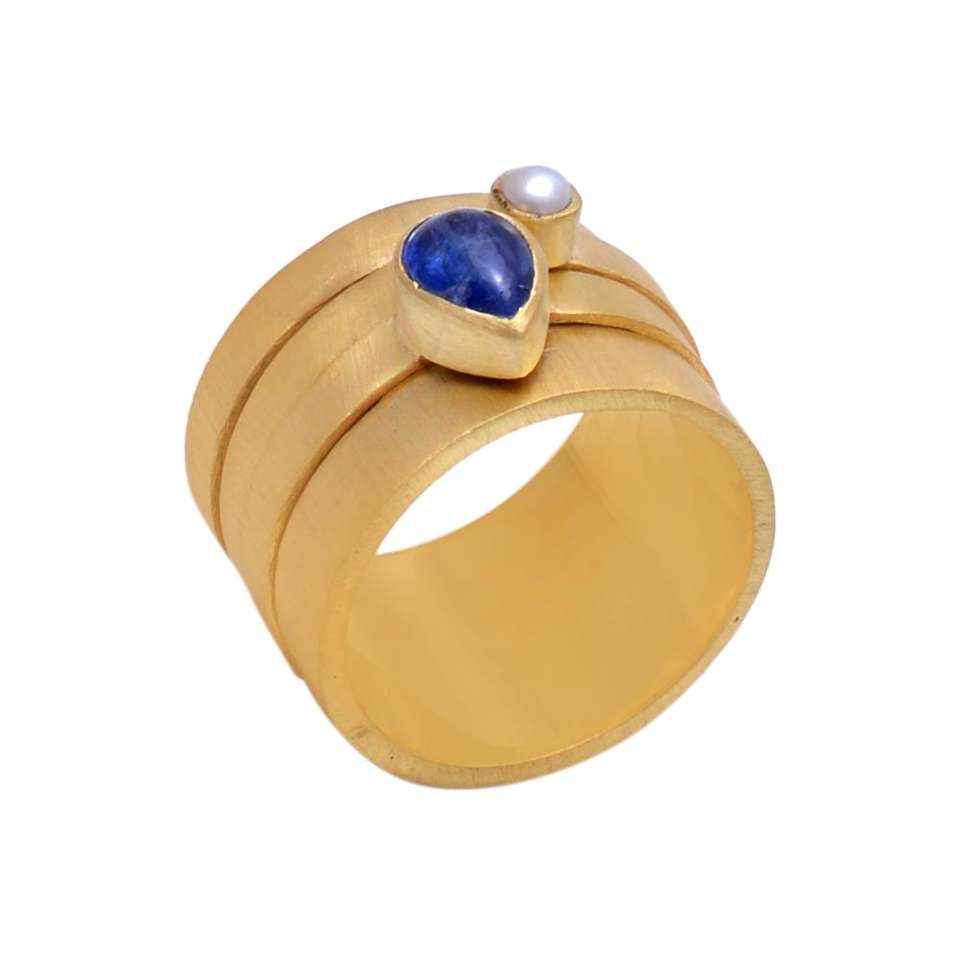 ชุบทองที่มีคุณภาพที่ดีที่สุดมุกสีฟ้า Kyanite ออกแบบแหวนเงินแท้925เครื่องประดับปรับ Casa De Plata