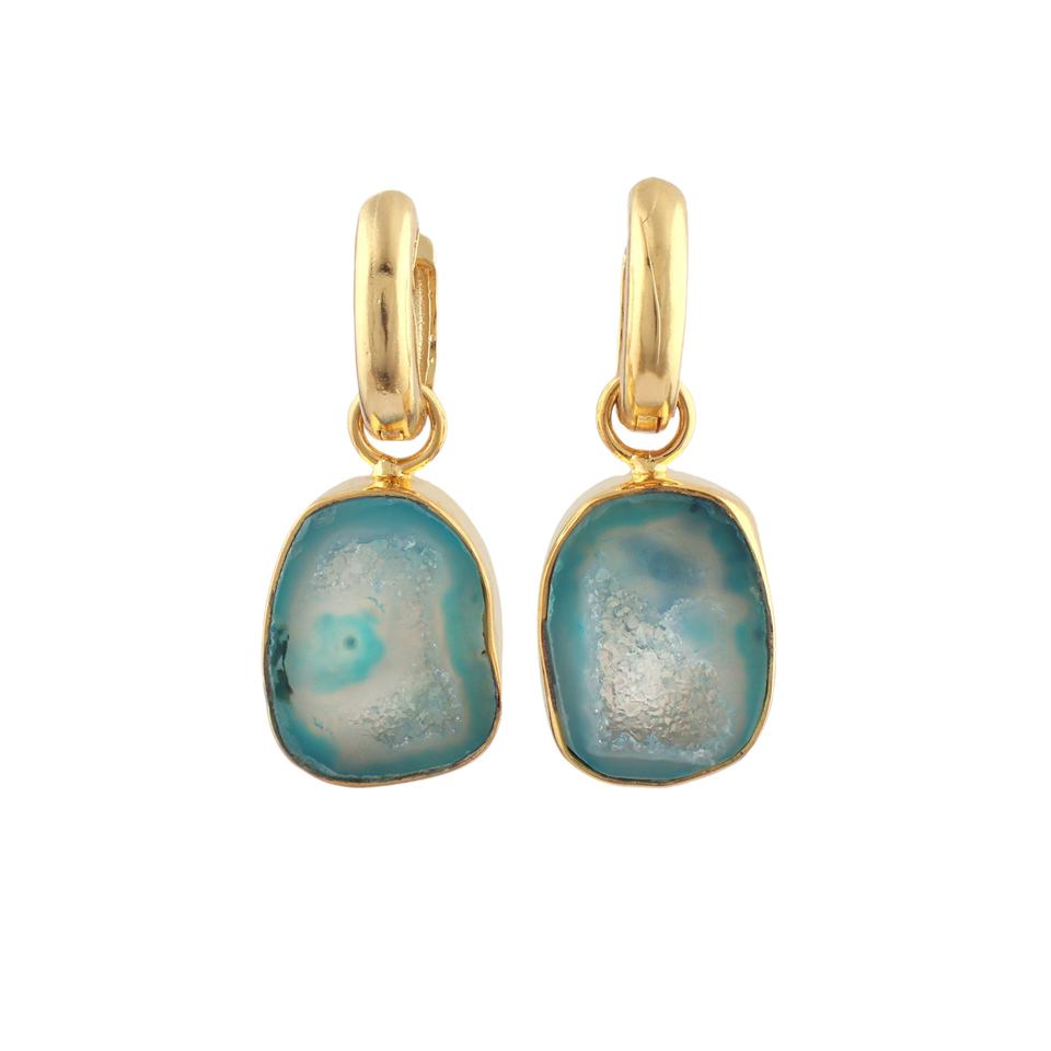 ต่างหูห้อยประดับคริสตัลสีน้ำเงินเคลือบทองคำแท้ ต่างหูห้อยทรงหยดน้ำประดับด้วยคริสตัลธรรมชาติสำหรับผู้หญิง ขายส่ง