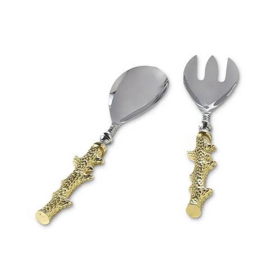 ชุดอุปกรณ์เสิร์ฟสลัดสแตนเลสสีเงินดีไซน์ก้านกวางทองเหลืองชุบทอง หรูหราทันสมัย ใช้กับเครื่องล้างจานได้