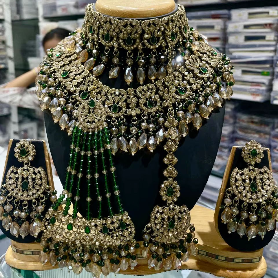 ชื่อผลิตภัณฑ์:ชุดสร้อยคอเจ้าสาวชุบทองพร้อมต่างหูและมังติกา