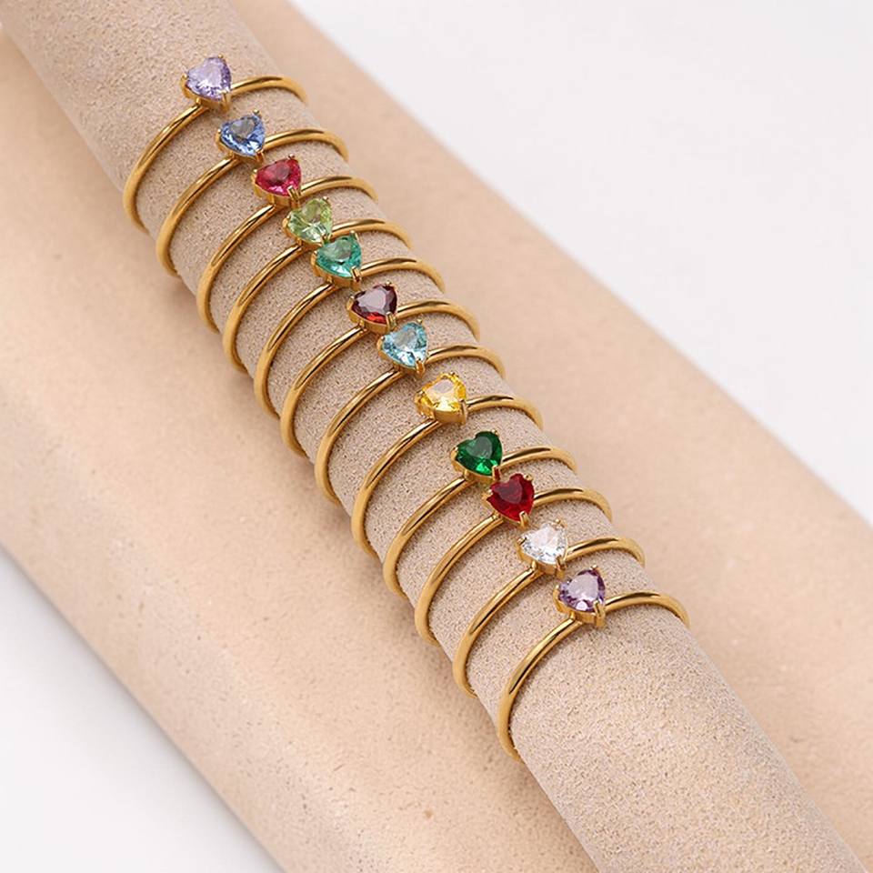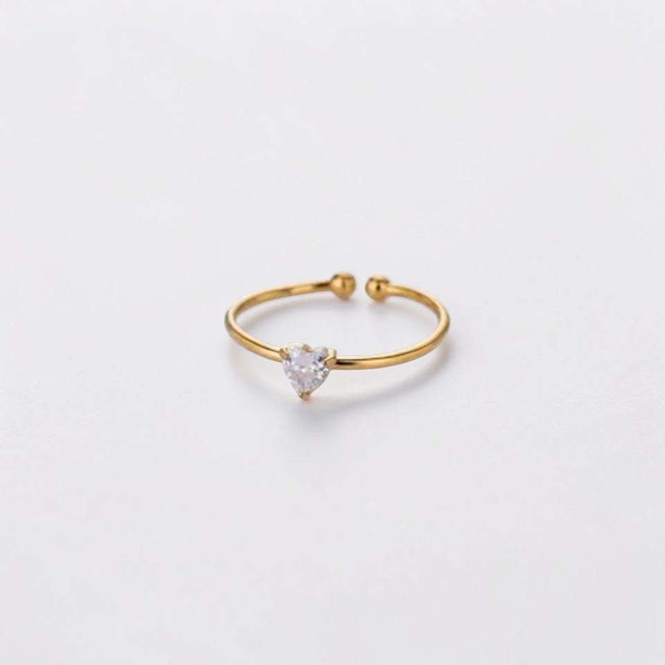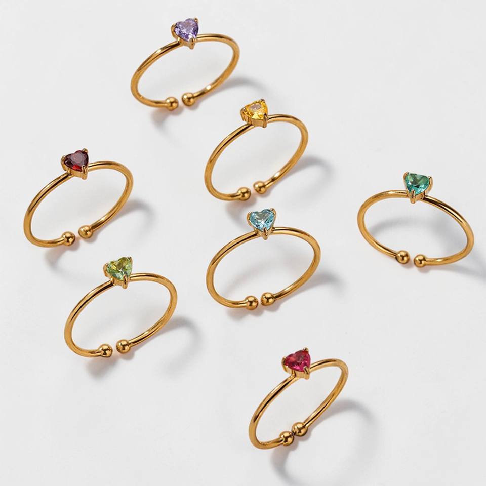 Gold Plated Brass Heart Cut Lab Created Crystal Quartz Stone Adjustable Open Ring Minimalist Stackable Fashion Women Jewelry
