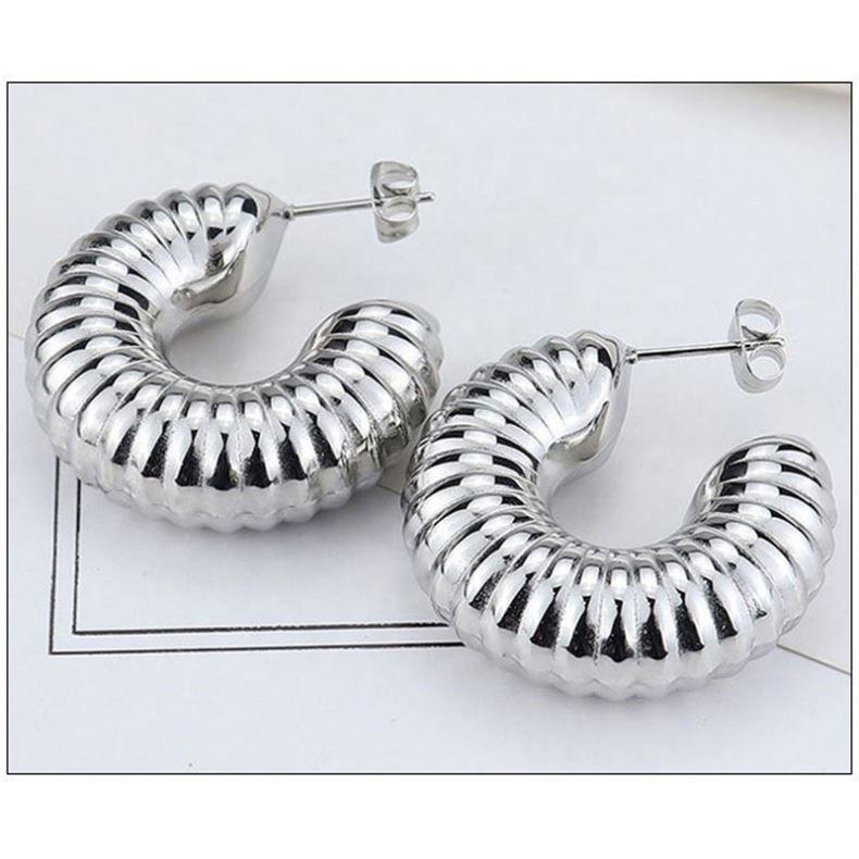 ต่างหูรูปตัว C ชุบทองสำหรับผู้หญิง ต่างหูห่วงโลหะผสมทรงเรขาคณิตขนาดใหญ่ ดีไซน์เก๋ไก๋แบบเกลียว