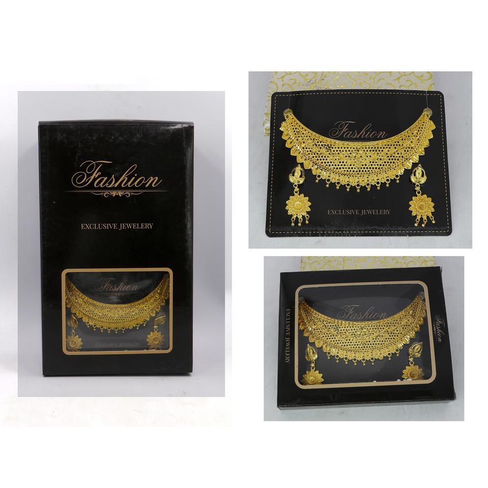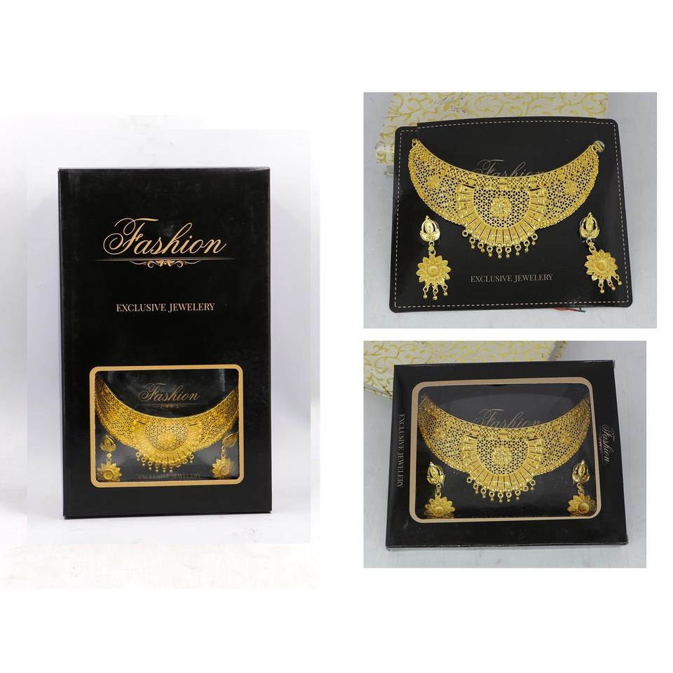 สร้อยโชคเกอร์ชุบทองชุดต่างหูต่างหูดีไซน์เนอร์สำหรับผู้หญิงสร้อยคอชุบทองแบบดั้งเดิม