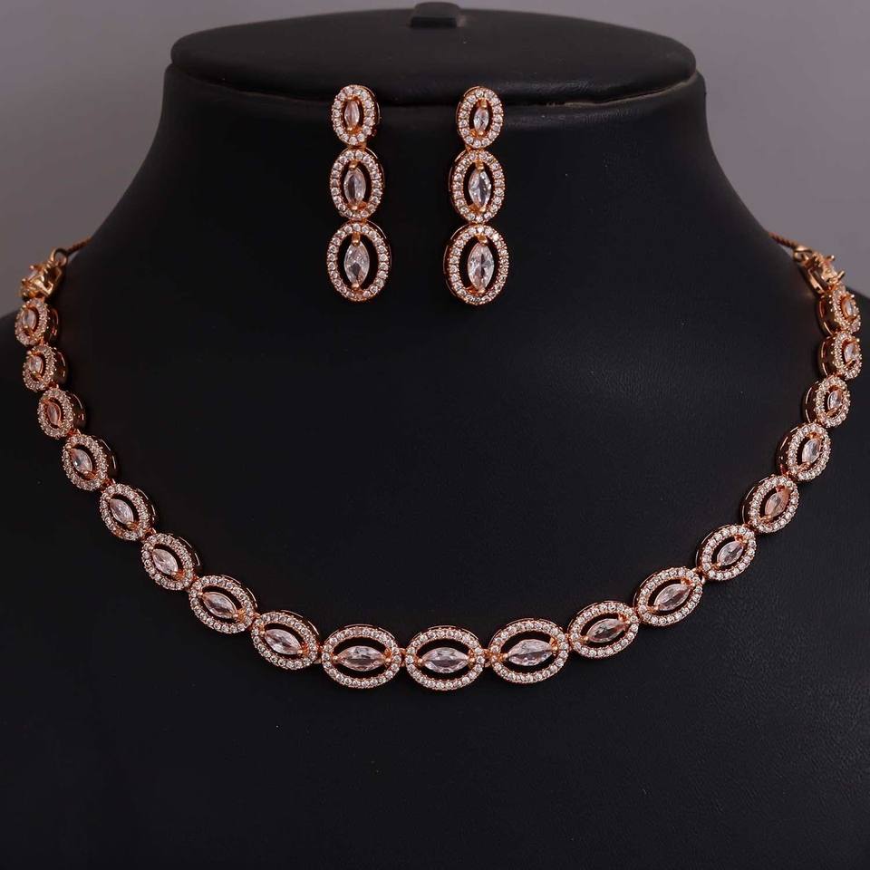 ชุดสร้อยคอวงกลมชุบทองประดับด้วยคิวบิกเซอร์โคเนียและต่างหูเข้าชุด ทำจากโลหะผสม เหมาะสำหรับงานแต่งงานและงานปาร์ตี้