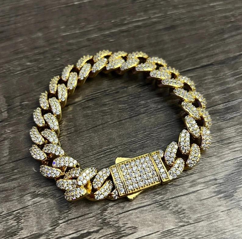 สร้อยข้อมือคิวบันลิงค์ประดับเพชรเทียม สไตล์ฮิปฮอปสุดหรูสำหรับผู้ชาย