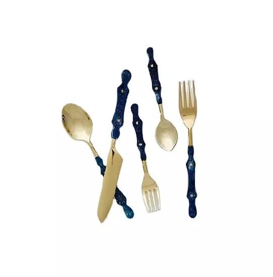 ชุดช้อนส้อมโลหะเคลือบทองสำหรับใช้ในบ้านชุดเครื่องใช้บนโต๊ะอาหารงานออกแบบทำมือ