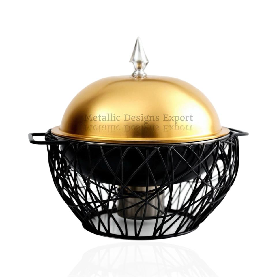 จานเสิร์ฟทรงโดมชุบทองฐานลวดสีดำเครื่องครัวสำหรับใส่อาหารที่อุ่นอาหารแบบมีสไตล์
