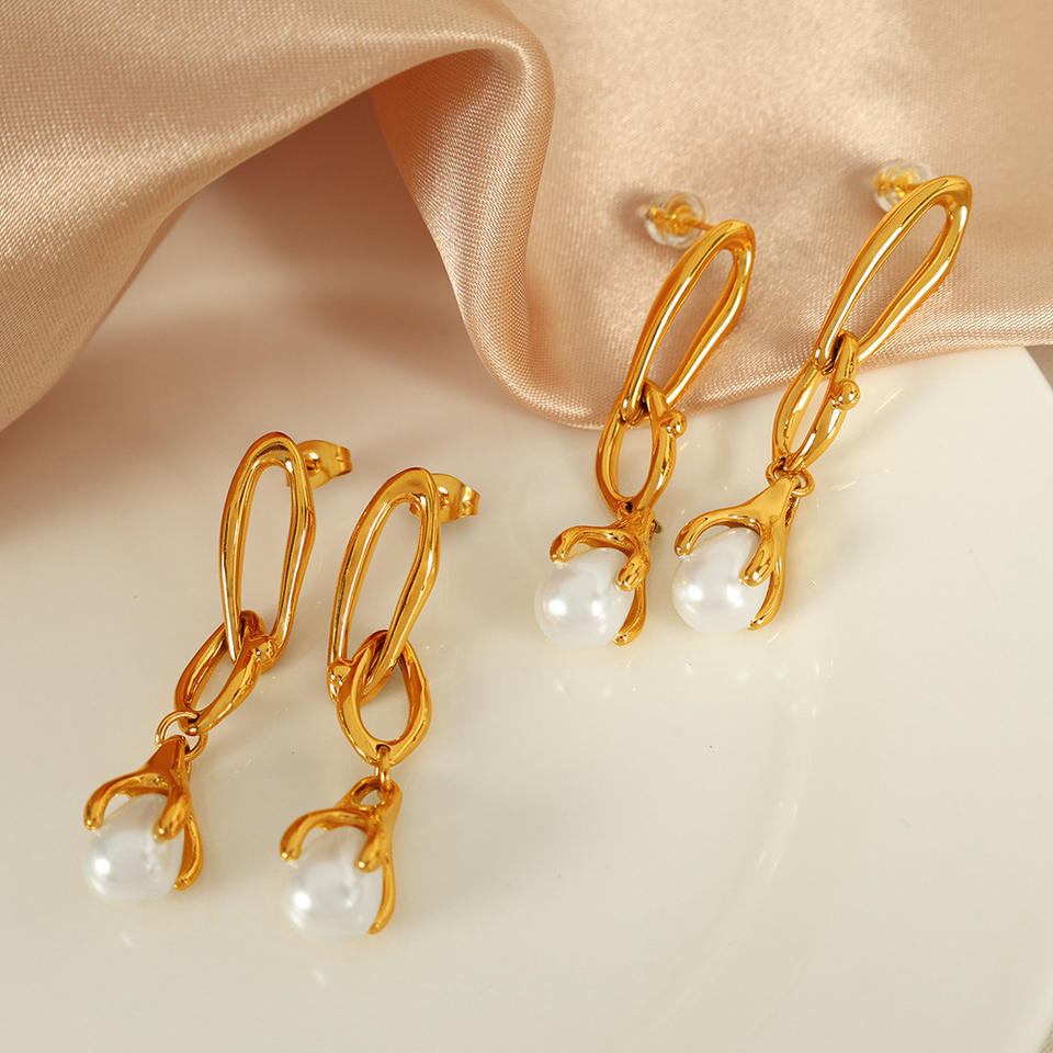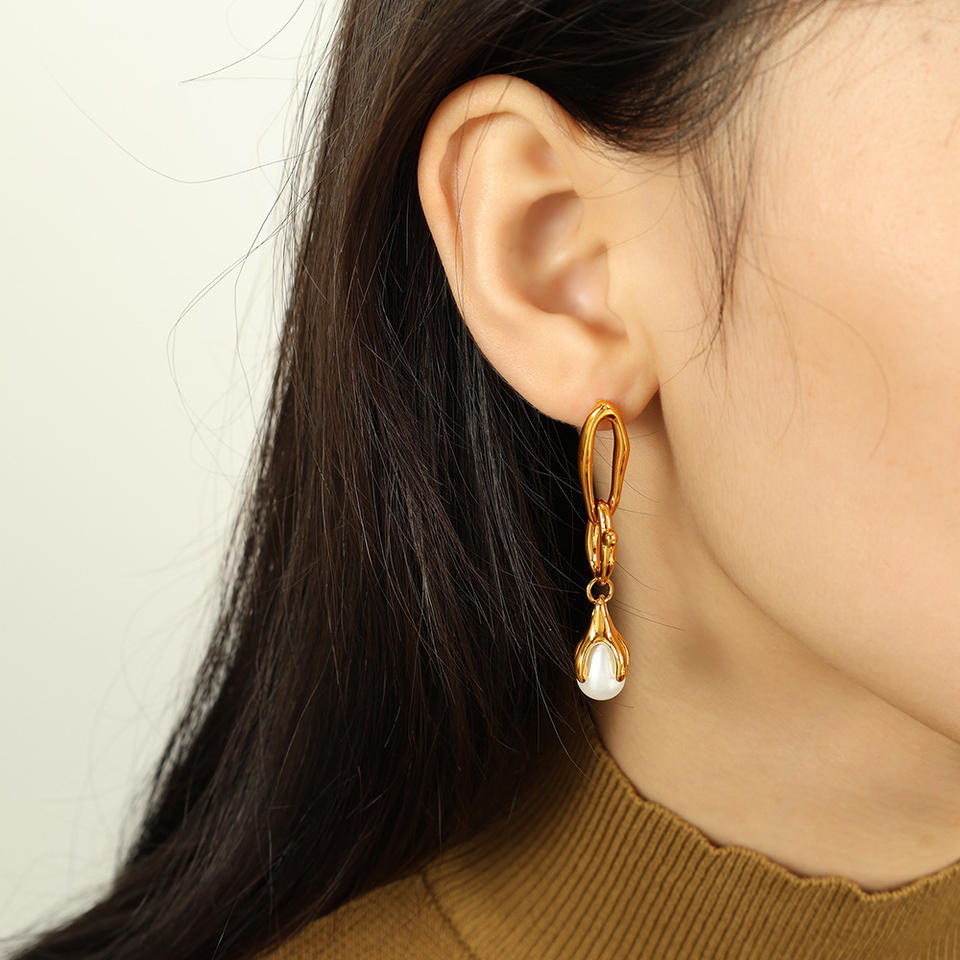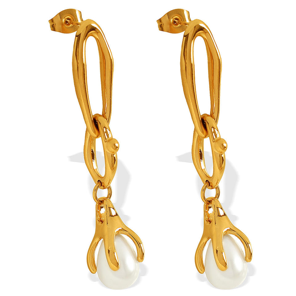 ต่างหูแบบห้อยชุบทองประดับมุกแบบกรงเล็บ สำหรับใส่ทุกวัน EH579