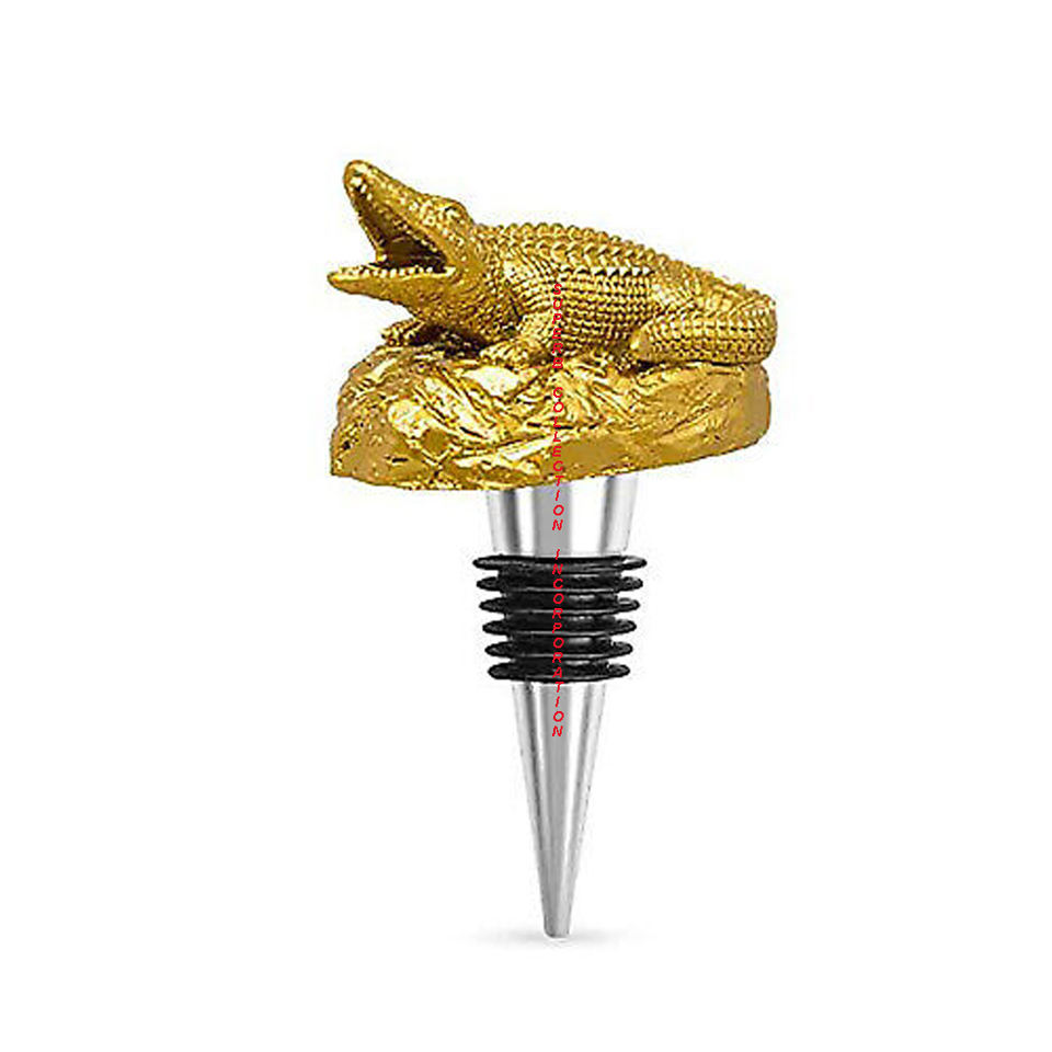 ตัวหยุดขวดไวน์บาร์จระเข้โลหะสลักลายนูนชุบทอง