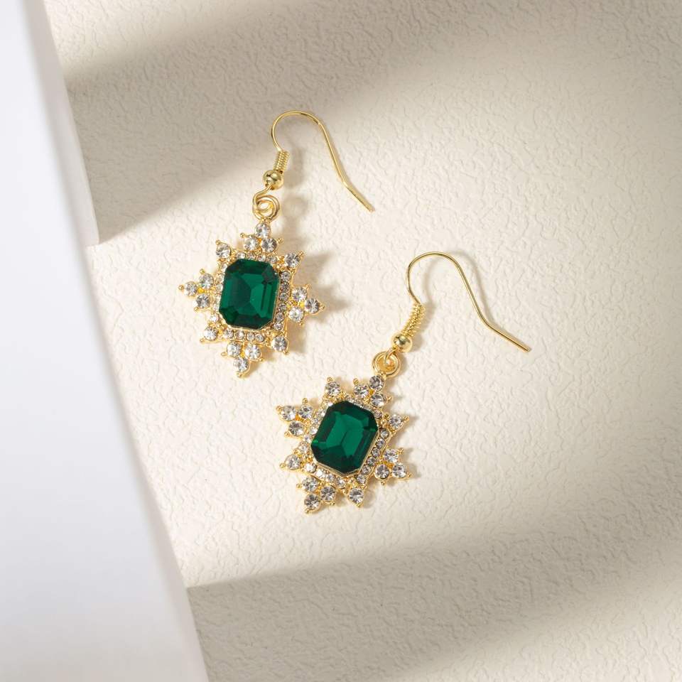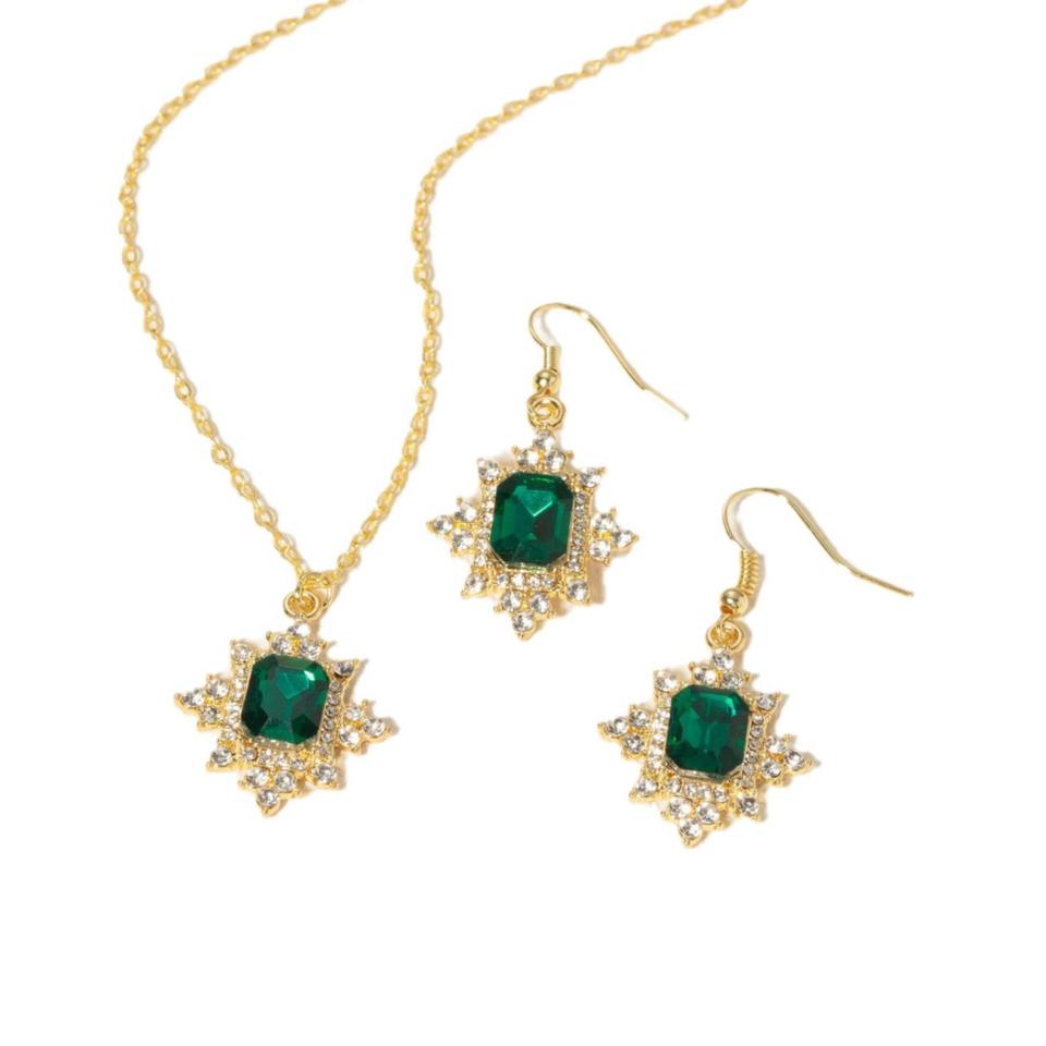 Product name:Gold Plated Emerald Green Glass Stone Neckalce Earring Set