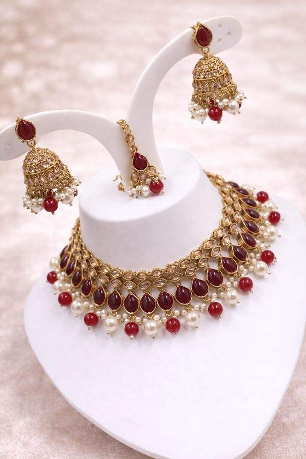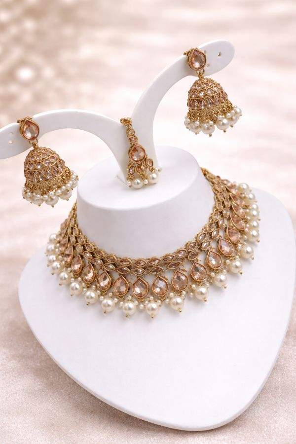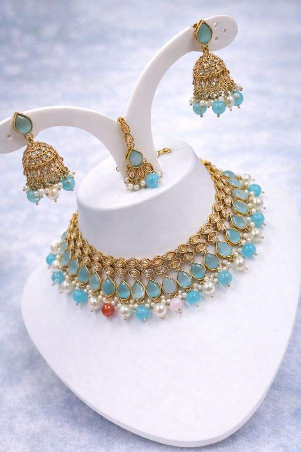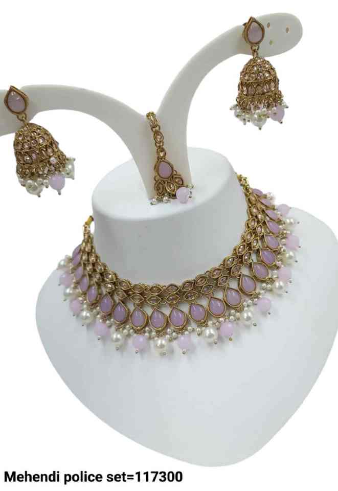 ชุดเครื่องประดับสร้อยคอประดับมุกเขียวและกุนดัน