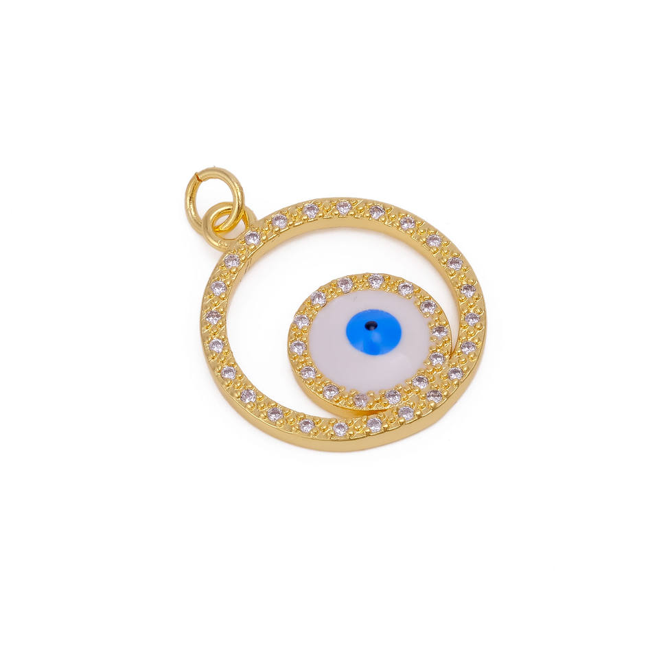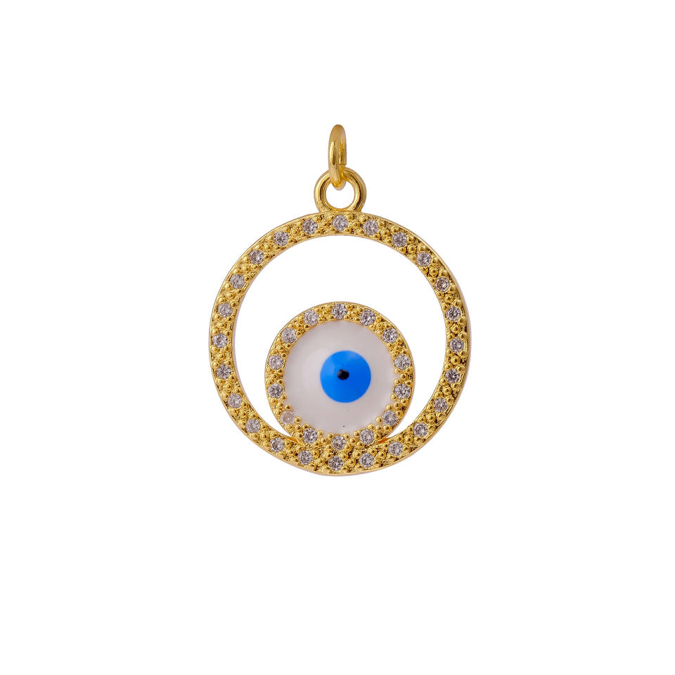 จี้วงกลมดวงตาชั่วร้ายชุบทองเคลือบสีขาวพร้อมจี้ป้องกันดวงตาสีฟ้าเสน่ห์โชคดีเครื่องประดับงานแต่งงาน