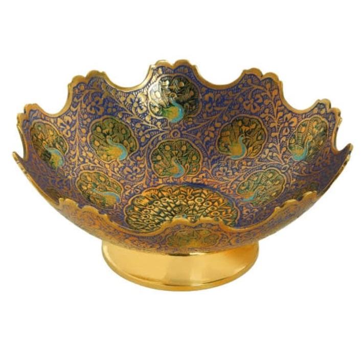 ชามเคลือบทองสำหรับเสิร์ฟ ป๊อปคอร์น ชามทรงกลมเพ้นท์ลายด้วยมือ คุณภาพเยี่ยม สำหรับงานจัดเลี้ยง