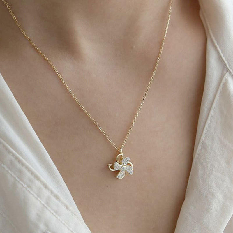 สร้อยคอจี้ดอกไม้ชุบทองประดับด้วยไรน์สโตนสไตล์มินิมอลสำหรับผู้หญิงสวมใส่ทุกวันโซ่ลายงู