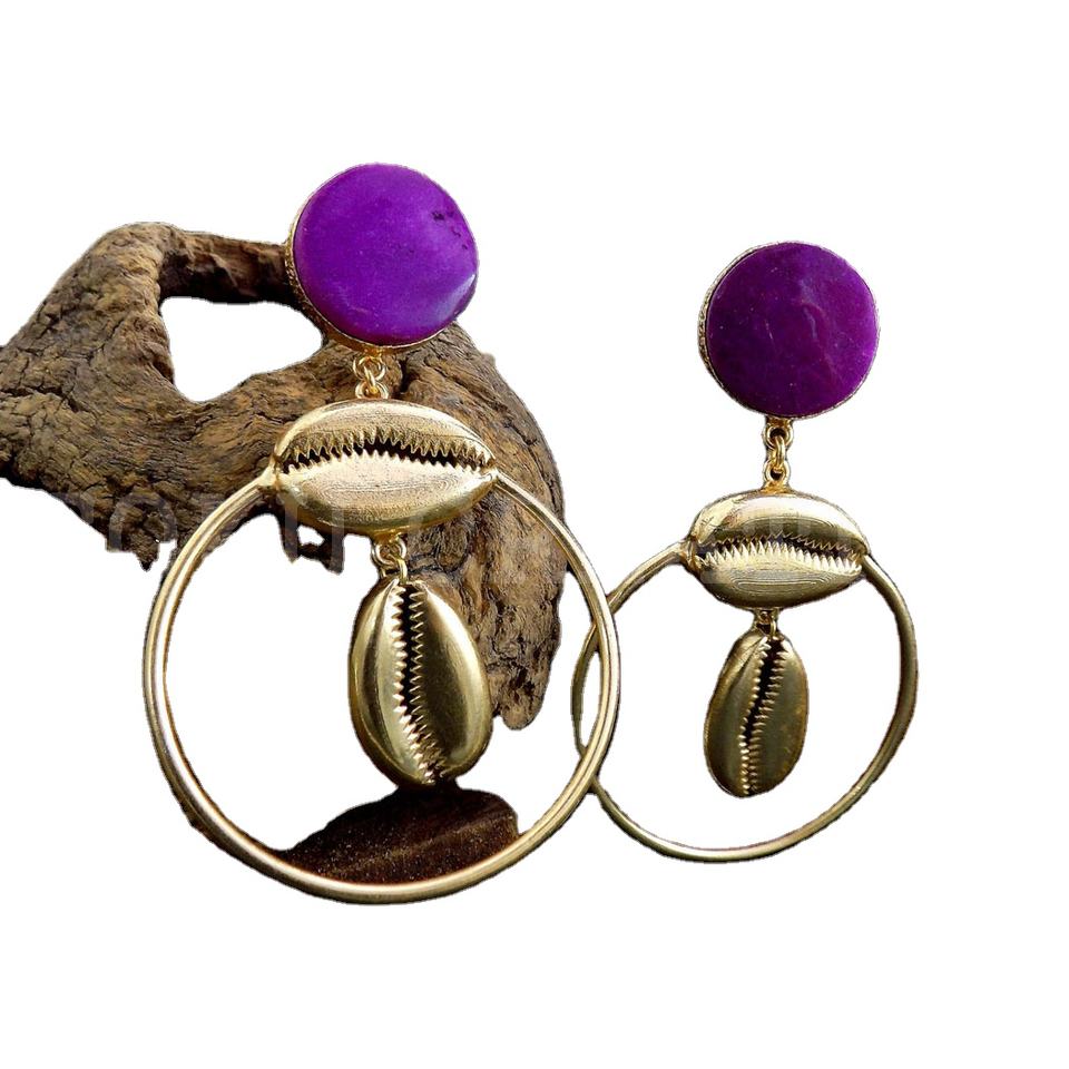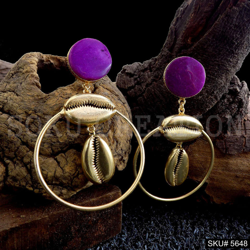 ต่างหูห้อยอัญมณีดีไซน์เปลือกหอยชุบทอง SKU5648แฟชั่น