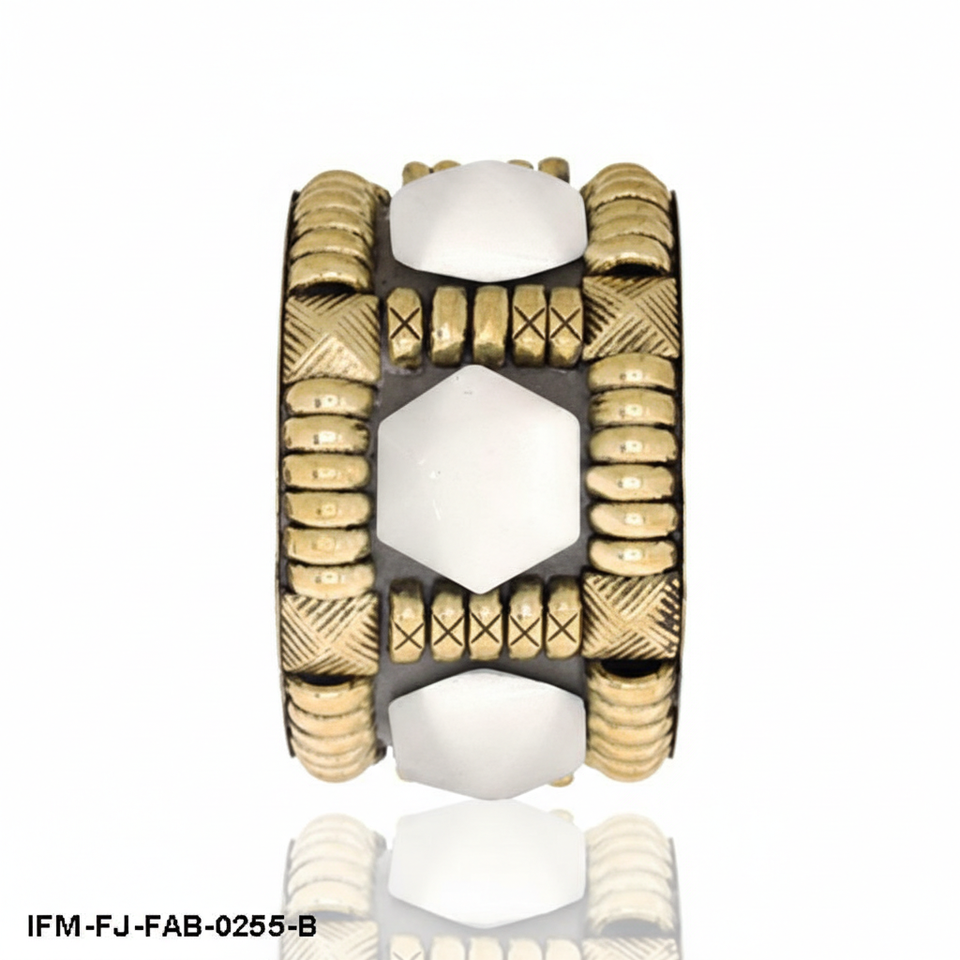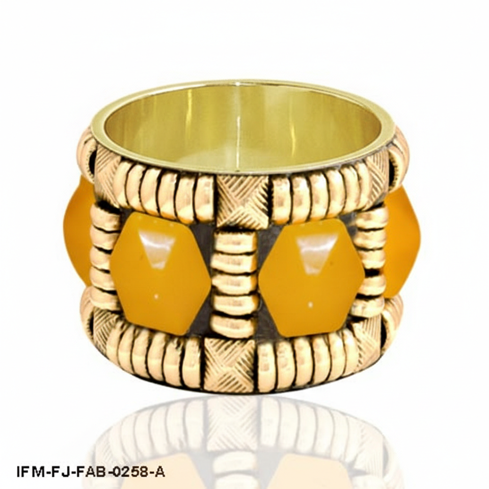กำไลข้อมือทรงเรขาคณิตชุบทองพร้อมประดับเรซินรูปหกเหลี่ยมสีเหลือง สไตล์โบฮีเมียนสำหรับผู้หญิง