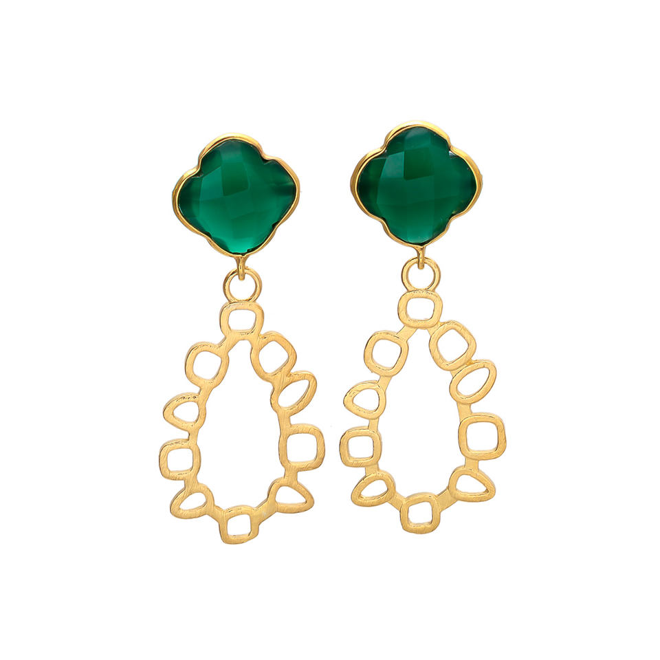 ต่างหูฟอยล์สีเขียวนิลชุบทองและต่างหูห้อยทรงเรขาคณิต