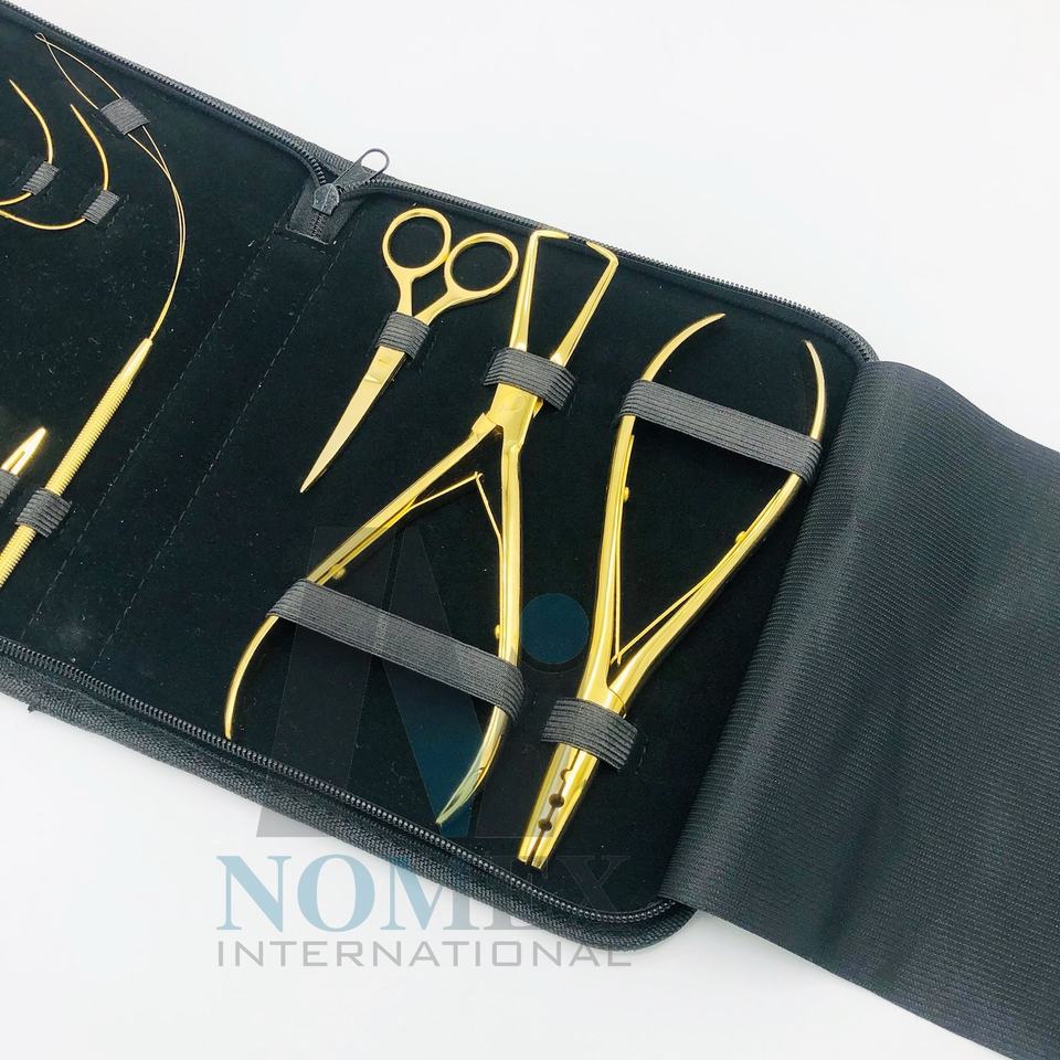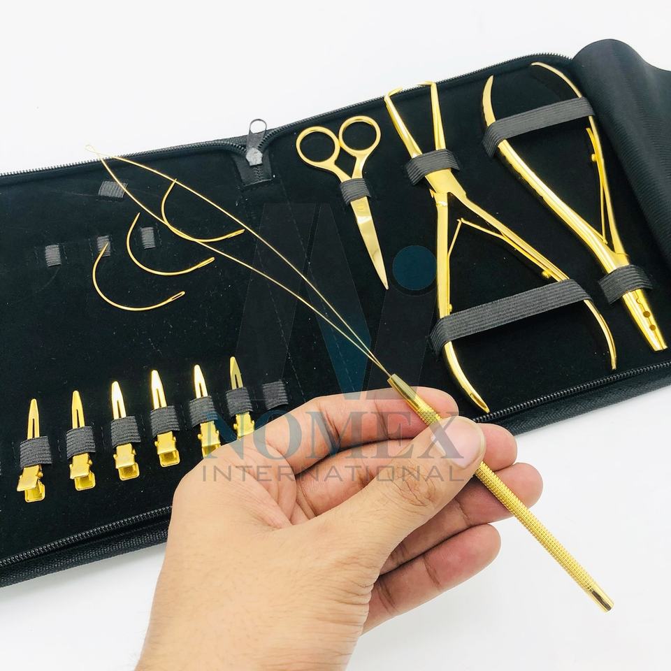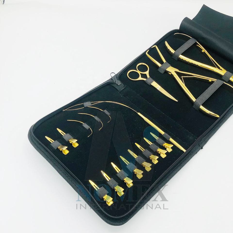 ชุดเครื่องมือต่อผมชุบทองพร้อมคลิปหนีบผมกรรไกรตัดด้ายทำจากสเตนเลสสตีลทนทาน