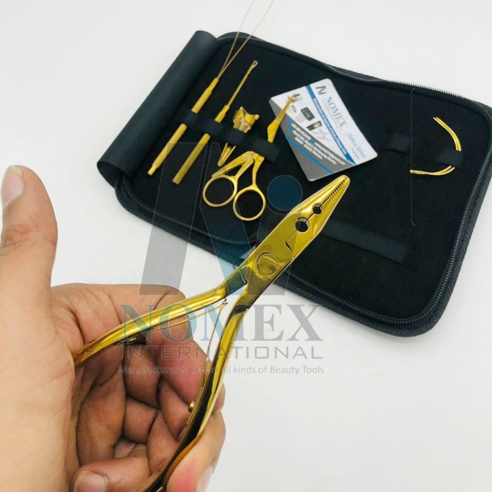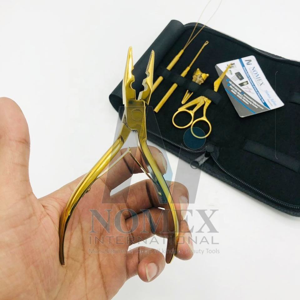 ชุดเครื่องมือต่อผมชุบทองสำหรับจัดแต่งทรงผมอย่างยั่งยืนอุปกรณ์จัดแต่งทรงผมสแตนเลสเกรดผ่าตัดออกแบบโลโก้ได้ตามต้องการ
