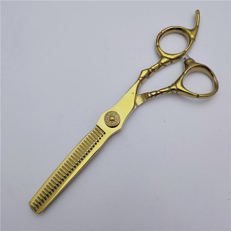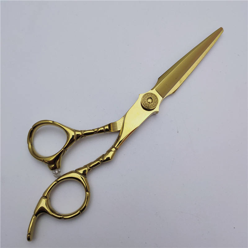 กรรไกรตัดผมเคลือบทอง 6 นิ้ว กรรไกรตัดผมแบบแบน กรรไกรซอยผม สแตนเลส ใบมีดคม ด้ามยาว สำหรับมืออาชีพ