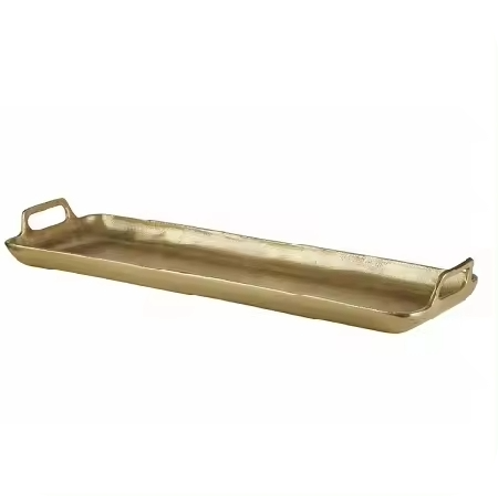 ถาดเสิร์ฟโลหะเคลือบทองงานแฮนด์เมดดีไซน์สุดหรูเครื่องใช้สำหรับงานปาร์ตี้ทันสมัยเครื่องล้างจานปลอดภัยและขัดเงา