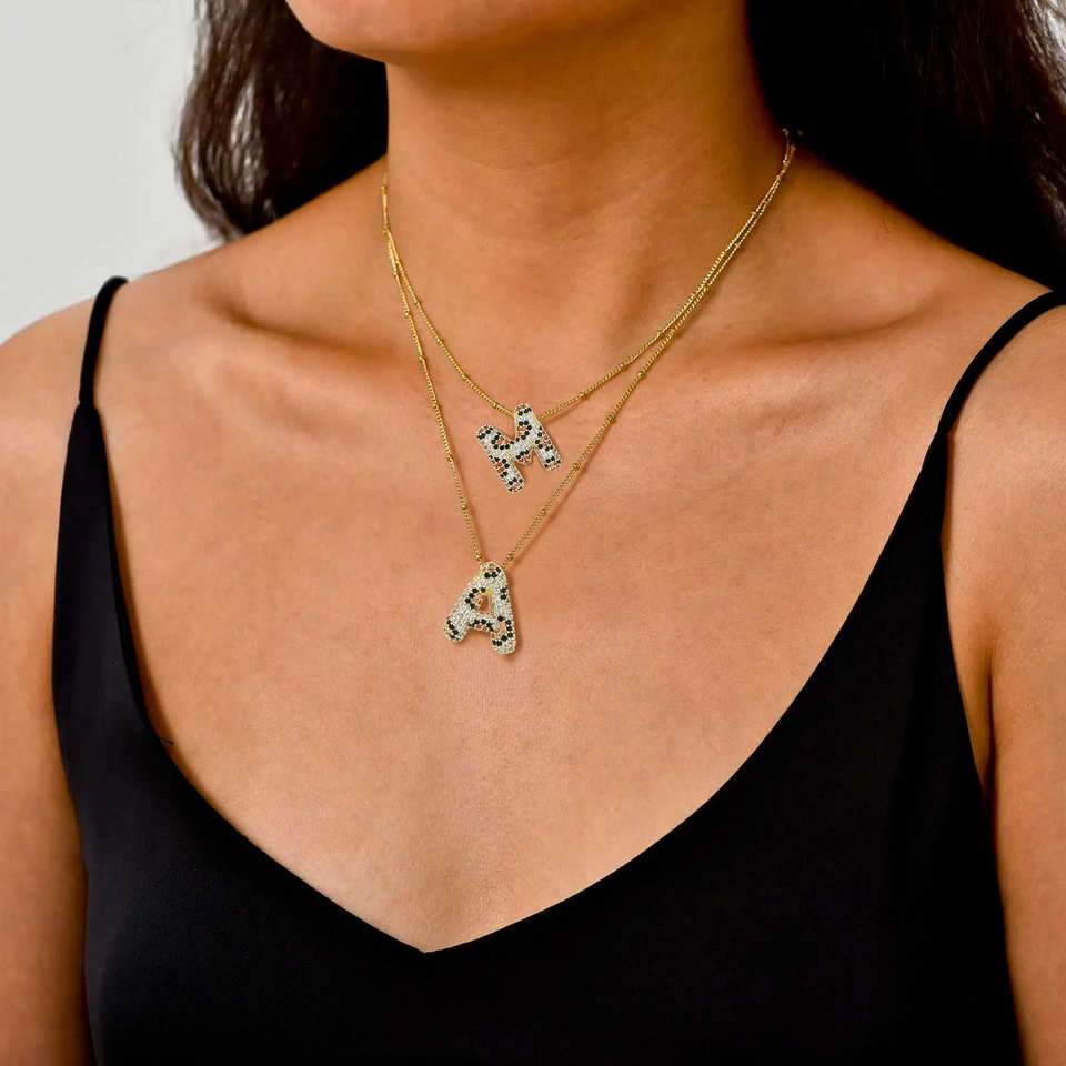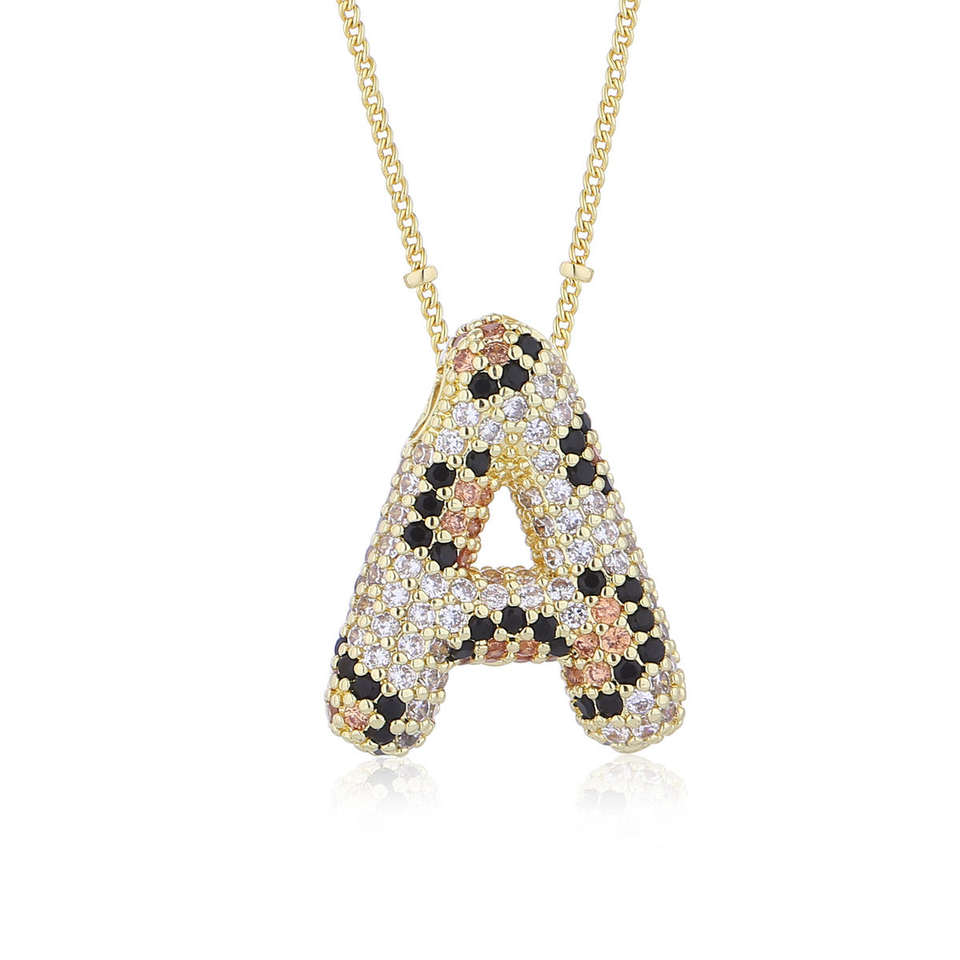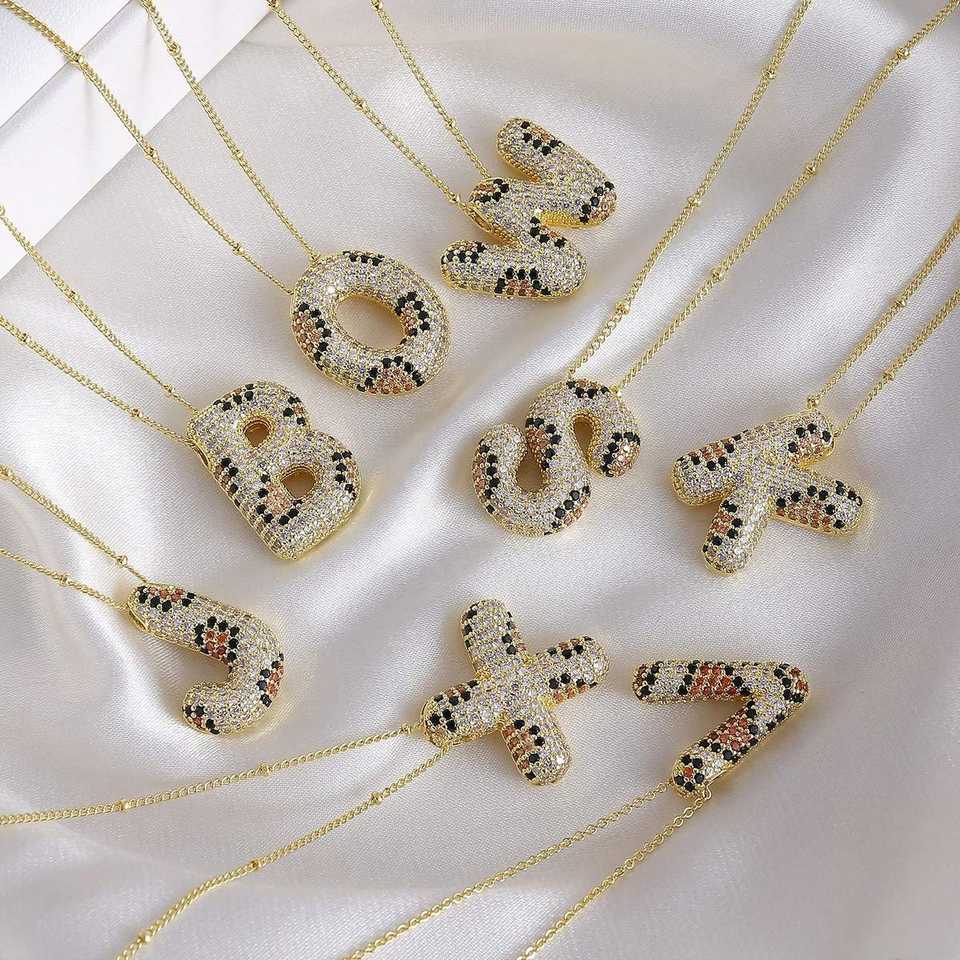 สร้อยคอฮิปฮอปชุบทองประดับเพชร CZ ลายเสือดาวสำหรับผู้หญิง เครื่องประดับหรูหรา จี้ตัวอักษร A-Z 26 ตัวอักษรภาษาอังกฤษ