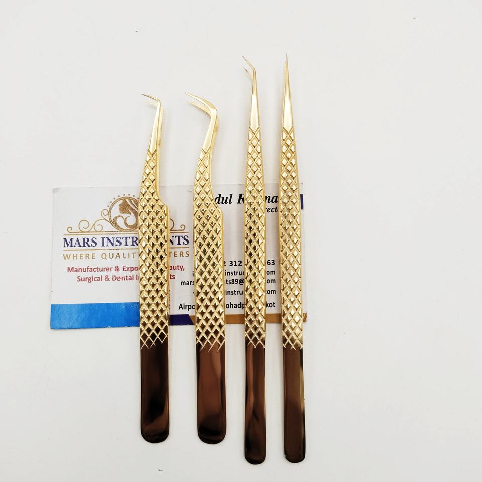 แหนบสำหรับต่อขนตาแยกปลายชุบทองแบบมืออาชีพ45องศา