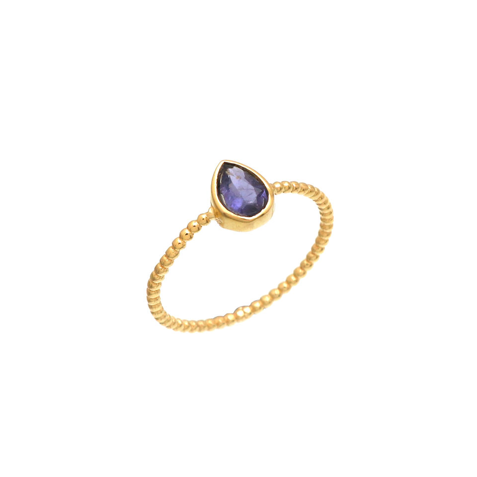แหวนเงินแท้ชุบทอง 18K ประดับพลอยไอโอไลต์ทรงกรงเล็บ ดีไซน์ทันสมัย เหมาะสำหรับงานแต่งงานและงานปาร์ตี้