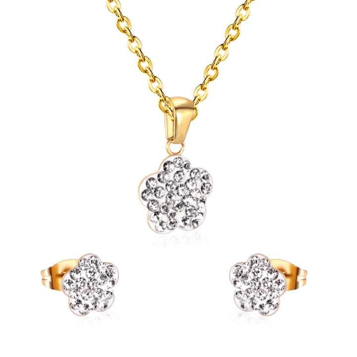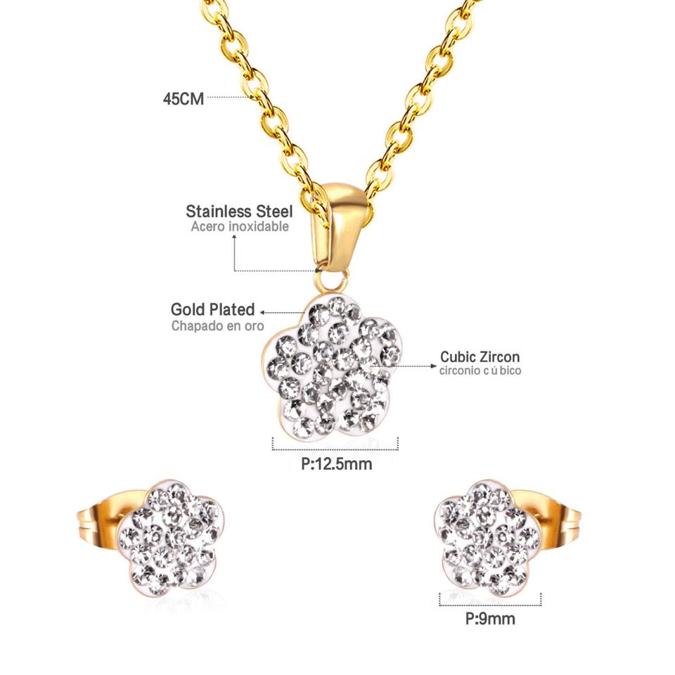 ชุดเครื่องประดับชุบทอง สร้อยคอและต่างหูสแตนเลส สำหรับเป็นของขวัญเจ้าสาว