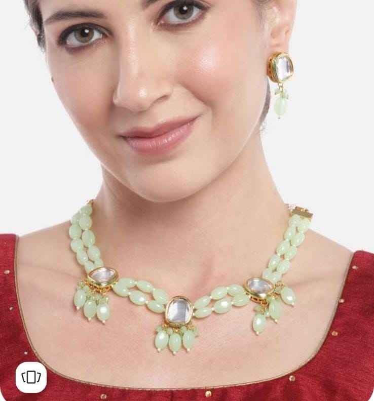 ชุดต่างหูสร้อยคอชุบทอง Kundan เครื่องประดับด้านหลัง Meenakari ลูกปัดสังเคราะห์สำหรับงานแต่งงานงานเลี้ยงเจ้าสาวของขวัญ