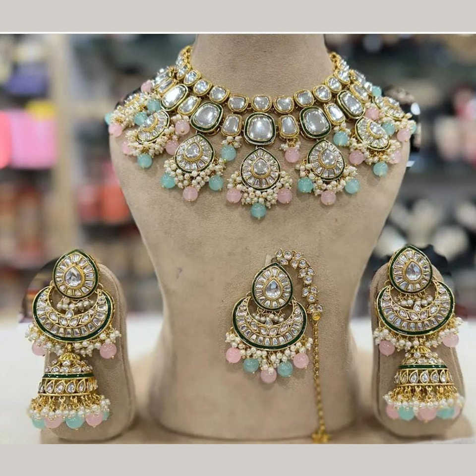 ชุดสร้อยคอเครื่องประดับชั้นดีประดับด้วยหินคันดันชุบทอง 10581144PGR