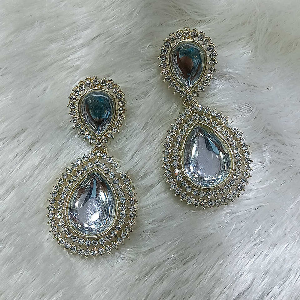 ต่างหูชุบทองหรูหราที่มีงาน Kundan ที่ซับซ้อนและที่ห้อยลูกปัดเหมาะสำหรับชุดแบบดั้งเดิม
