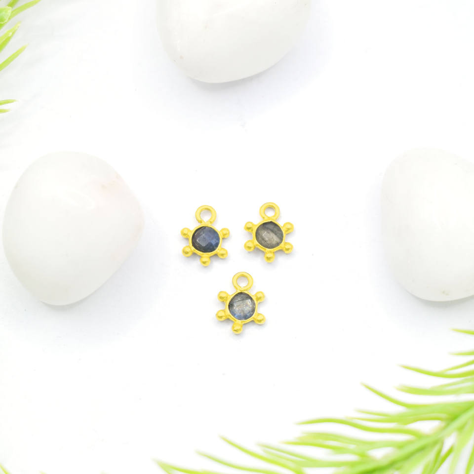 จี้พระอาทิตย์ลาบราโดไรต์ชุบทอง | จี้รูปดาวประดับพลอยทรงกลมขนาดเล็กสำหรับทำสร้อยคอและต่างหู
