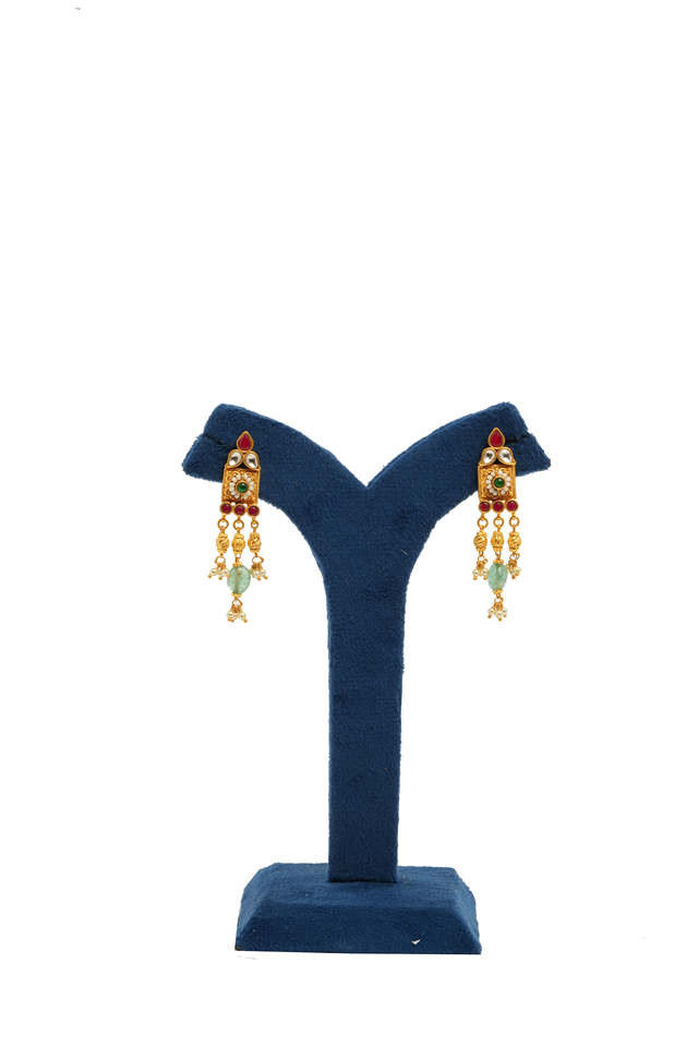 ชุดสร้อยคอเคลือบทองประดับลูกปัดสีเขียว จี้เหรียญ และสร้อยมุก ชุดเครื่องประดับเจ้าสาวและงานเทศกาลแบบอินเดียดั้งเดิม