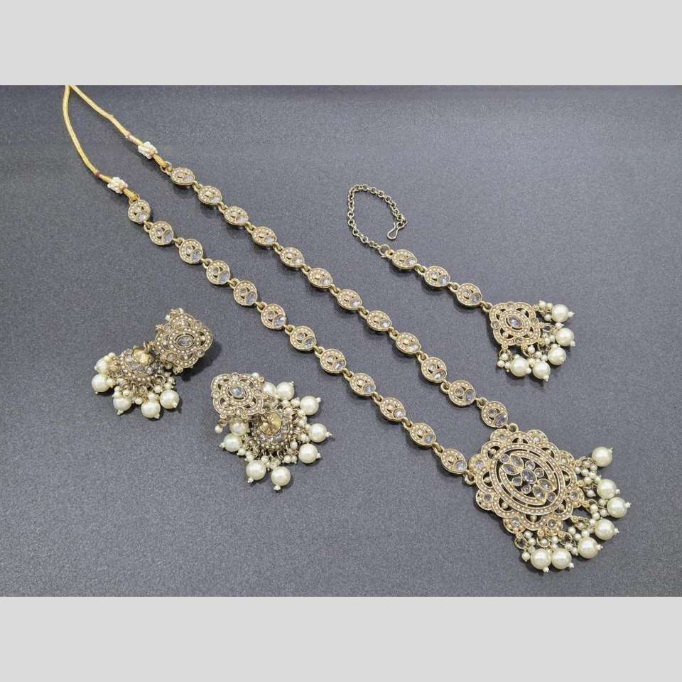 ชุดสร้อยคอยาวชุบทองพร้อมหินคริสตัลและไข่มุกชุดเครื่องประดับ11714301WH ชั้นดี
