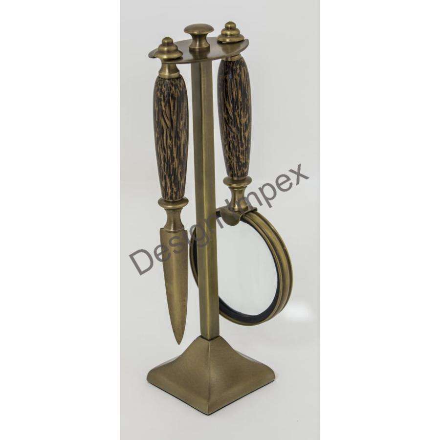 แว่นขยายหรูหราชุบทองพร้อมที่เปิดจดหมายและฐานตั้ง ของตกแต่งโต๊ะทำงาน สินค้าหรูหราในราคาที่เข้าถึงได้
