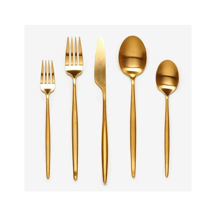 ชุดเครื่องเงินสุดหรูชุบทองงานหัตถกรรมโลหะตกแต่งสแตนเลสชุดเครื่องใช้บนโต๊ะอาหารสำเร็จรูปสีทองสำหรับงานแต่งงาน