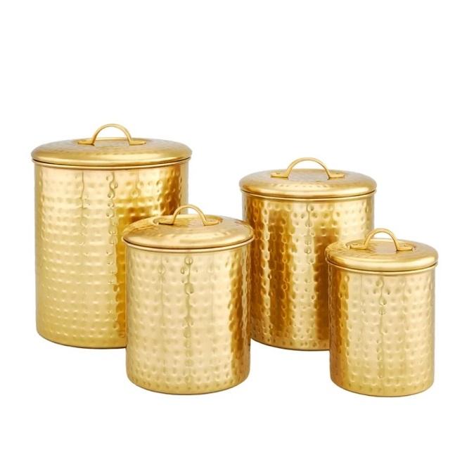 กระป๋องโลหะเคลือบทองชุดออกแบบทำด้วยมือสามชิ้นสไตล์คลาสสิกขายส่งหรูหราใหม่กระป๋องโลหะ