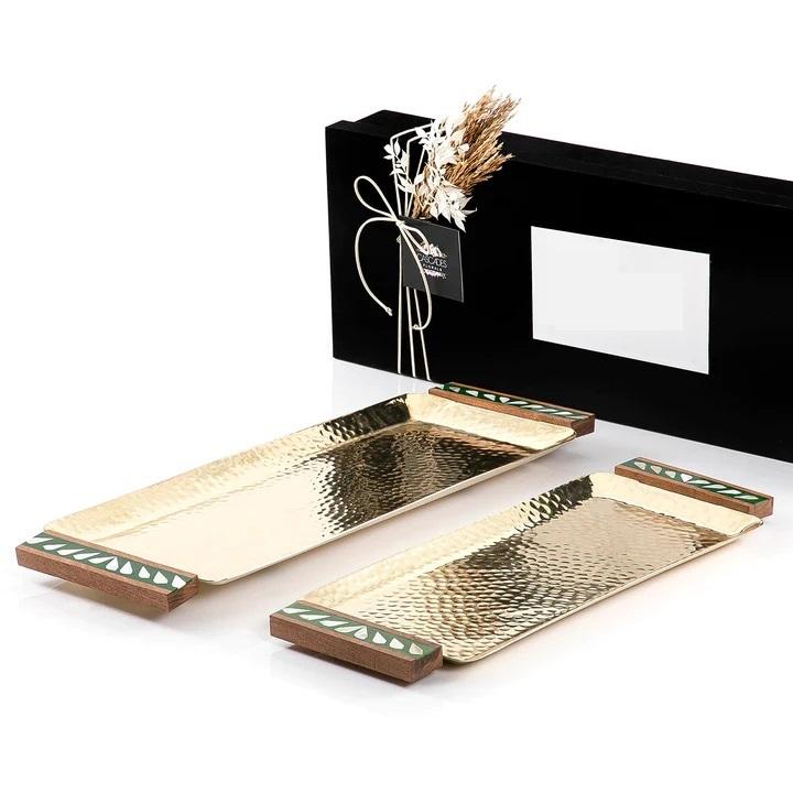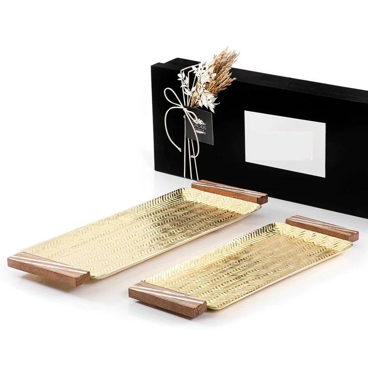 ถาดรองกาแฟโลหะเคลือบทองพร้อมที่จับดีไซน์ใหม่สำหรับภาชนะใส่อาหารถาดเสิร์ฟอาหารว่างและของว่าง