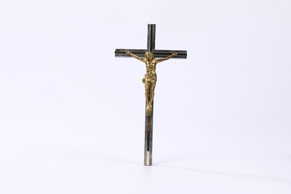 ไม้กางเขนโลหะชุบทองขัดเงาพร้อมรูปพระเยซูแกะสลัก ตกแต่งผนังแบบคาทอลิก ของตกแต่งบ้านคริสเตียน ตัดแบบไดคัทสำหรับคริสต์มาส