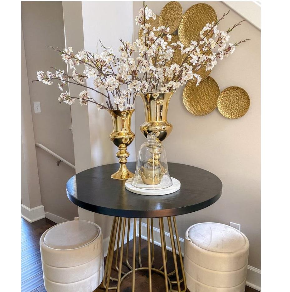 แจกันดอกไม้โลหะชุบทอง ตกแต่งบนโต๊ะ ดีไซน์มินิมอลสไตล์ชายทะเล ใหม่ เหมาะสำหรับงานแต่งงานและตกแต่งคริสต์มาส แจกันทรงแตร